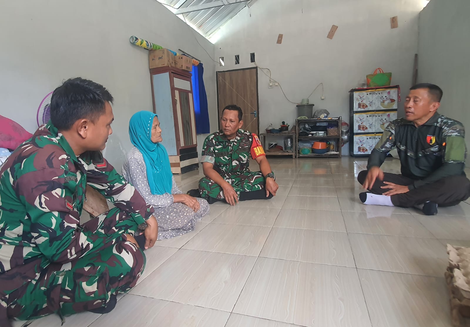 Dikunjungi para Babinsa Koramil 0813-21/Sukosewu yang didampingi Kepala Desa Klepek, Efendi, dan Kepala Dusun Sidomulyo, Dwi Puryanto, Sukimah pun menceritakan kronologi kejadian. bagaimana ia bisa sampai menjadi korban penipuan oleh orang tak dikenal.