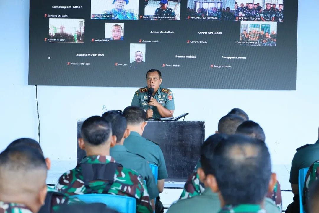 Tidore Kepulauan – Komandan Kodim 1505/Tidore, Letkol Inf Wahyu Widya Sasono, memberikan Jam Komandan kepada seluruh prajurit dan PNS usai pelaksanaan upacara bendera yang berlangsung di Aula Makodim 1505/Tidore, Kota Tidore Kepulauan, Senin (19/1/2026).