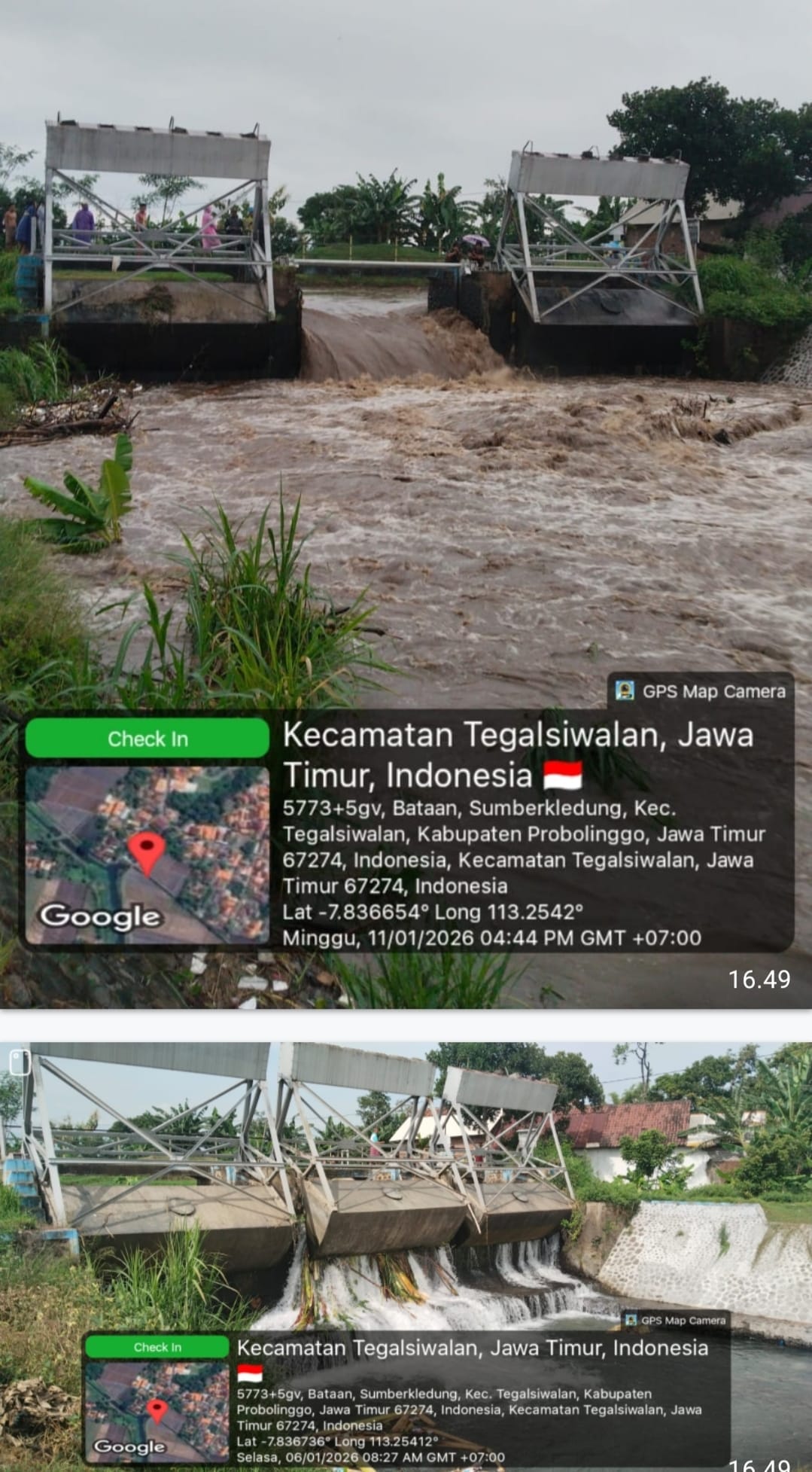 Sibernkri.Com // Probolinggo – Hujan lebat yang terus mengguyur wilayah Jawa Timur, khususnya Kabupaten Probolinggo, mengakibatkan jebolnya Dam Manting pada Jumat sore (11/01/2026) sekitar pukul 15.30 WIB. Peristiwa tersebut menyebabkan genangan air semakin meninggi dan merendam area persawahan di sekitarnya.