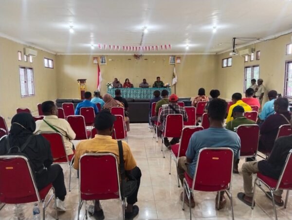 Timika, sibernkri.com – Bertempat di Kantor Distrik Kuala Kencana, Danramil 1710-03/Kuala Kencana Kapten Inf Agustinus Samba Palangiran menghadiri acara tatap muka bersama pejabat baru dilingkup Distrik Kuala Kenacana sekaligus perkenalan bersama tokoh masyarakat, agama, adat dan tokoh pemuda dalam rangka komunikasi sosial di wilayah Koramil 1710-03/Kuala Kencana, Sabtu (11/04/2026).