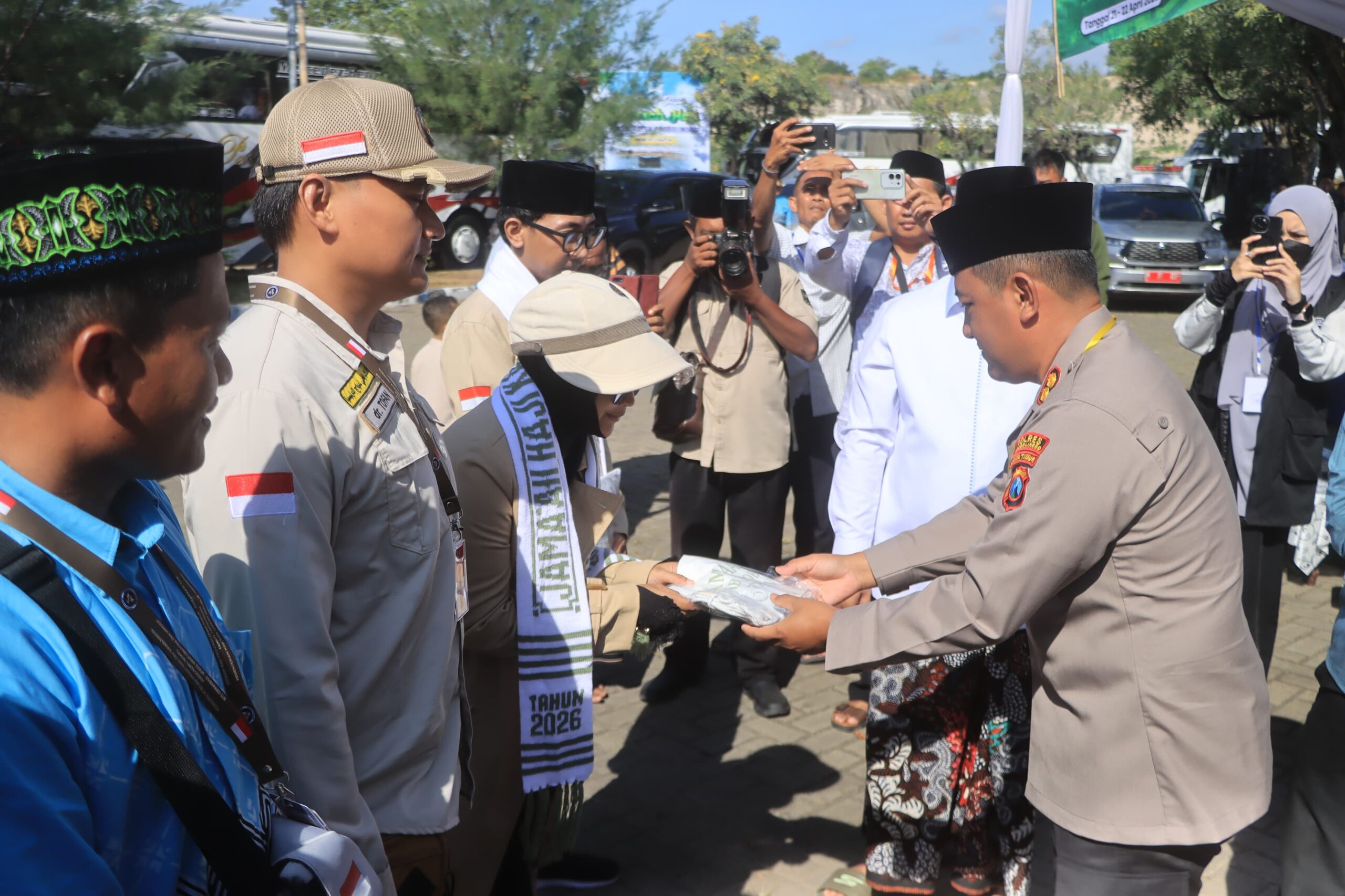 “Kami berkomitmen memberikan pelayanan terbaik agar para jemaah dapat berangkat dengan aman, nyaman, dan penuh kekhusyukan,” tegas Kapolres.