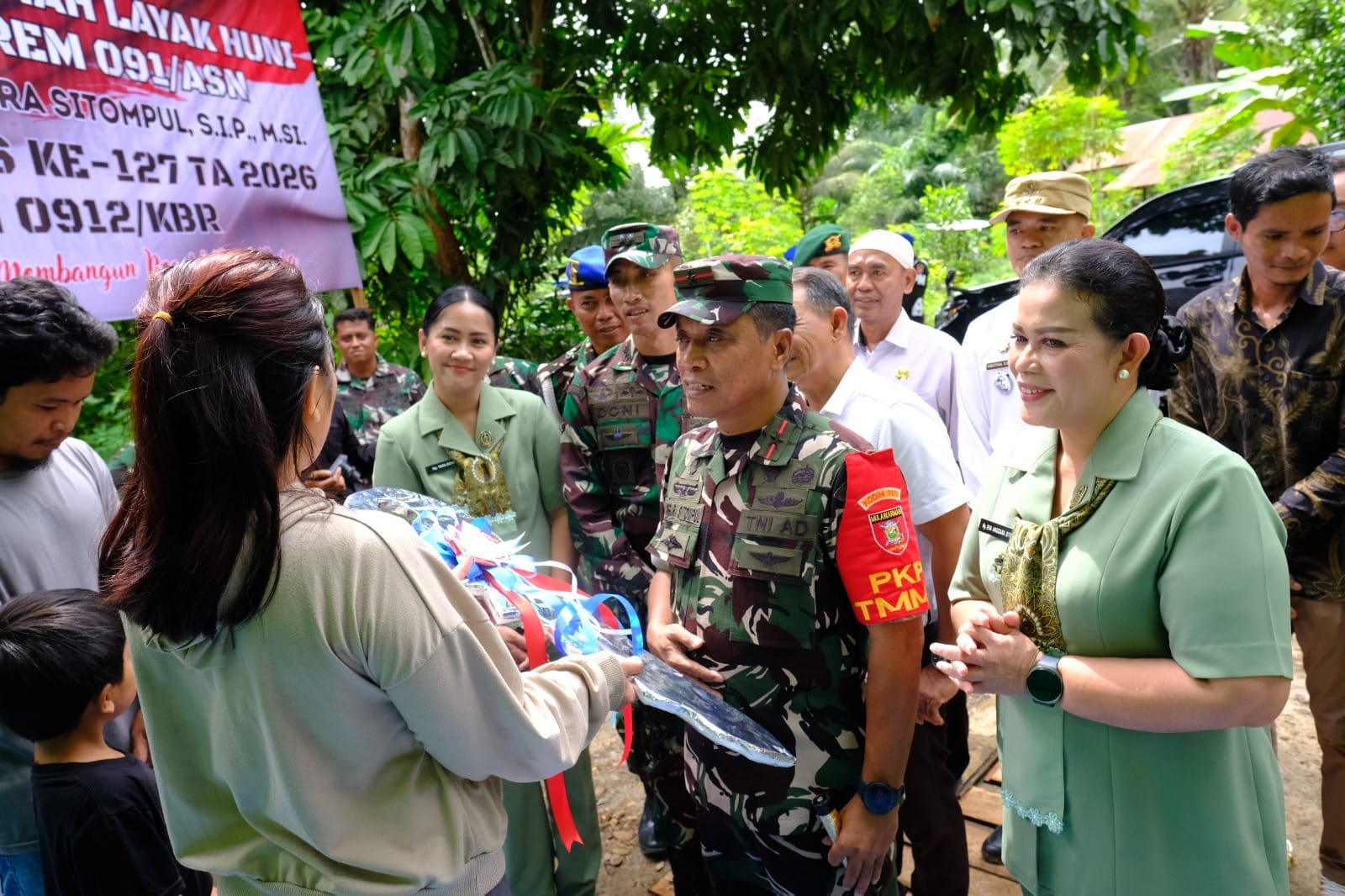 Dalam kegiatan itu, Danrem 091/ASN didampingi Wakil Bupati Kutai Barat Nanang Adriani, S.PKP., M.Si., Dansatgas TMMD Ke-127 Letkol Inf Doni Fransisco, S.Sos., M.Han., serta diikuti unsur Forkopimda Kabupaten Kutai Barat, Forkopimcam Linggang Bigung, dan Persit.