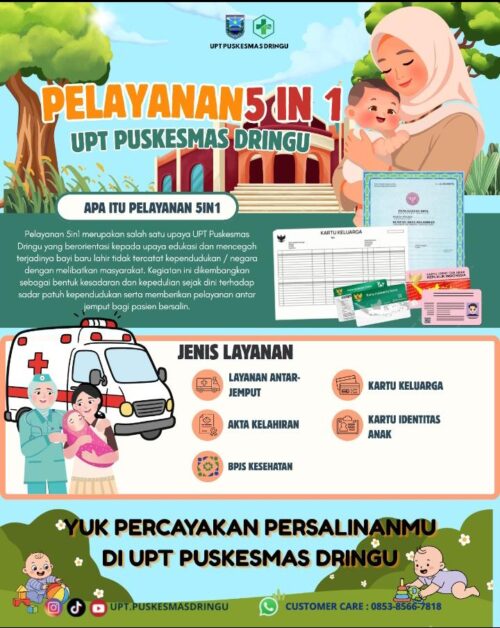 PROBOLINGGO, Sibernkri.com – UPT Puskesmas Dringu secara resmi memperkenalkan program unggulan “Pelayanan 5 in 1”….