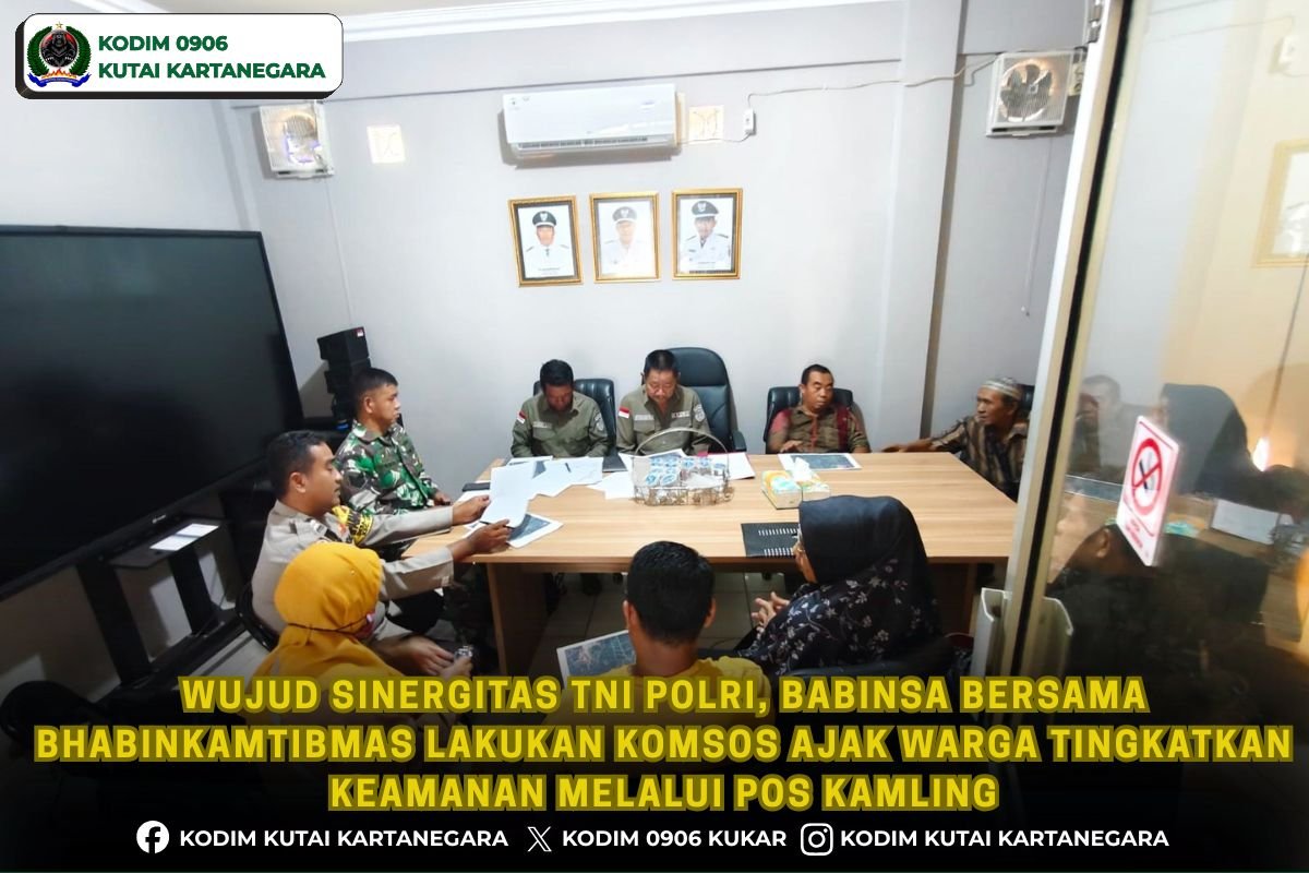 Kutai Kartanegara. sibernkri.com- Jaga stabilitas keamanan dan ketirtiban yang ada di lingkungan masyarakat, anggota Koramil 0906-02/Loa Kulu Serma Siswanto bersama bhabinkamtibmas lakukan kegiatan komsos dengan perangkat desa dan warga bertempat di ruang aula yang berada di Desa Jongkang Jalan Mangkunegara rt 3 Kecamatan Loa Kulu, Rabu 15/4/26.